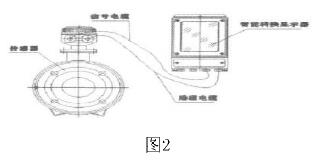 化工污水管道流量計是由流量傳感器和轉(zhuǎn)換器(也叫顯示器)兩大部分組成。測量管上下裝有激磁線圈,通激磁電流后產(chǎn)生磁場穿過測量管,一對電極裝在測量管內(nèi)壁與液體相接觸,引出感應(yīng)電勢,送到轉(zhuǎn)換器。激磁電流則由轉(zhuǎn)換器提供。如圖2所示: