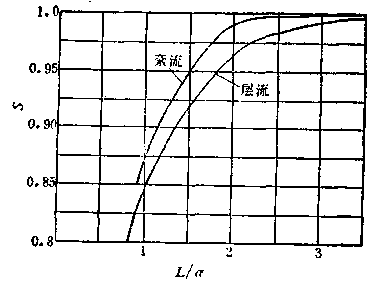 如果測量管是導電的,由于導電管壁的短路作用,磁場邊緣效應就會更加明顯,并導致電極上感生電動勢損失的增加.隨著管壁導電率和壁厚的變化,這種影響也將隨之改變.若以  表示管壁厚度,K表示管壁電導率,d和  仍然分別表示測量管內半徑和被測液體電導率,則可用L/d和a=  來表示不同情況下邊緣效應的影響程度,如圖3—36所示.