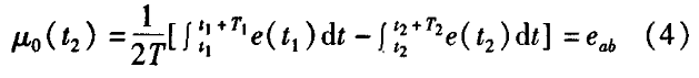 冷熱水流量計一般都采用工頻交流電源供電,其電源電壓的幅值和頻率的變化都會給冷熱水流量計帶來電源性干擾噪聲。對電源電壓的幅值變化,因采用多級集成穩(wěn)壓,一般而言電源電壓的幅值變化對電磁流量的測量精度影響不大。當(dāng)電源電壓的頻率波動時,雖然其波動范圍有限,但對冷熱水流量計測量精度影響較大。為了解決工頻干擾問題,實現(xiàn)對流體流速感應(yīng)電勢e柚信號的準(zhǔn)確測量,需利用以下基本關(guān)系:①勵磁周期為工頻周期的整數(shù)倍,即勵磁頻率為50/nHz(n為偶數(shù));②正負(fù)勵磁下的同相位采樣。圖2是對應(yīng)低頻矩形波勵磁形式下的典型電勢信號形式,按上述關(guān)系在一個勵磁周期下,若假設(shè)t。和t:點為工頻干擾的等效干擾點,且采樣寬度T=T1=T2,則e –ab的基本算式為:,