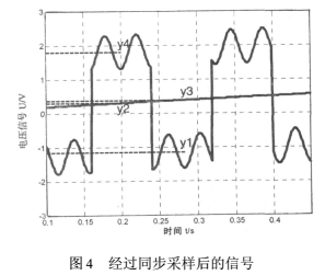 對于基線零點漂移,“正負(fù)差值法”是比較有效便捷的選擇,它不需要直接消除信號中的基線零點漂移,而是通過算法上去掉基線零點漂移對測量結(jié)果的影響。該系統(tǒng)中,激磁信號的頻率為6.25Hz,由于所測量的液體流速不會有明顯的突變,所以在信號的一個周期0.16s內(nèi),可以采用一個波峰減去波谷的均值來表示此時的流量信號,也即如圖3中|y4-y1|其中y4是從nT+T/4到nT+T/2采樣結(jié)果的算術(shù)平均值,y1是從到(n+1)T進(jìn)行采樣結(jié)果的算術(shù)平均值。但是由于斜率零點漂移的存在,會出現(xiàn)如圖3中|y3-y2|的誤差,所以需要利用式(15)的結(jié)果對該誤差進(jìn)行修正,修正后的結(jié)果也就是此時管道中液體感應(yīng)出的電動勢為: