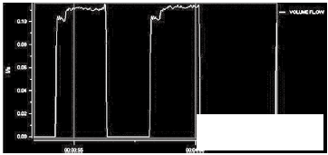 灌裝頭的*終出口部分為10~14mm的可更換縮口。通過縮口,可以產(chǎn)生背壓,一般縮口內(nèi)置蜂窩狀虹吸管,保證灌裝前后的管道滿管。從測(cè)試的流量波形上看,10mm的灌裝頭產(chǎn)生適當(dāng)?shù)淖枘嵝Ч髁壳€較穩(wěn)定。