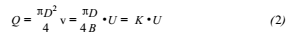 式(1)說明,導(dǎo)體在磁場內(nèi)作切割磁力線運(yùn)動,導(dǎo)體兩端產(chǎn)生的感應(yīng)電動勢的大小與磁感應(yīng)強(qiáng)度B成正比,與導(dǎo)體的長度D成正比,與導(dǎo)體運(yùn)動的速度v成正比。由式(2)可知液體的體積流量與感應(yīng)電動勢成正比,這就是印染廢水流量計的設(shè)計原理。