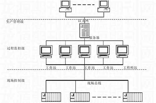 針對鎢礦選廠生產(chǎn)的實(shí)際需求,這里應(yīng)用相應(yīng)的自動(dòng)化技術(shù),對自動(dòng)化監(jiān)控系統(tǒng)進(jìn)行了設(shè)計(jì)。在系統(tǒng)設(shè)計(jì)中,遵循“方案合理、技術(shù)先進(jìn)、運(yùn)行可靠、操作方便”的原則,系統(tǒng)整體采用集散控制系統(tǒng),基于現(xiàn)場總線通訊,其整體網(wǎng)絡(luò)構(gòu)架如下: