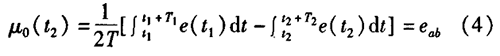 智能濃硫酸電磁流量計(jì)一般都采用工頻交流電源供電,其電源電壓的幅值和頻率的變化都會(huì)給智能濃硫酸電磁流量計(jì)帶來電源性干擾噪聲。對電源電壓的幅值變化,因采用多級集成穩(wěn)壓,一般而言電源電壓的幅值變化對電磁流量的測量精度影響不大。當(dāng)電源電壓的頻率波動(dòng)時(shí),雖然其波動(dòng)范圍有限,但對智能濃硫酸電磁流量計(jì)測量精度影響較大。為了解決工頻干擾問題,實(shí)現(xiàn)對流體流速感應(yīng)電勢e柚信號的準(zhǔn)確測量,需利用以下基本關(guān)系:①勵(lì)磁周期為工頻周期的整數(shù)倍,即勵(lì)磁頻率為50/nHz(n為偶數(shù));②正負(fù)勵(lì)磁下的同相位采樣。圖2是對應(yīng)低頻矩形波勵(lì)磁形式下的典型電勢信號形式,按上述關(guān)系在一個(gè)勵(lì)磁周期下,若假設(shè)t。和t:點(diǎn)為工頻干擾的等效干擾點(diǎn),且采樣寬度T=T1=T2,則e –ab的基本算式為:,