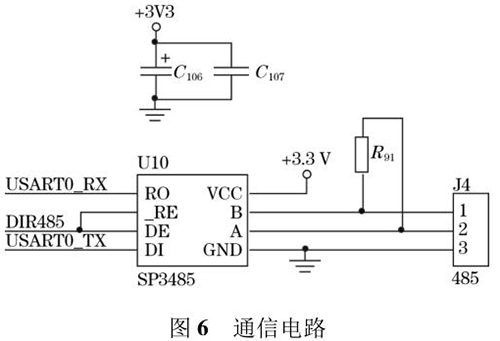 防腐型電磁流量計輸出的流量值可以通過外接的 TFTLCD 屏直接顯示,還可以通過預(yù)留的 RS485 通信接口將數(shù)據(jù)發(fā)送到上位機中。RS485 電路*大的優(yōu)點是 485 電平與 TTL 電平兼容,方便與 TTL 電路相連;抗共模干擾能力強;數(shù)據(jù)傳輸速度快,高達(dá) 10 Mbps;通信距離遠(yuǎn),*大為 1.2 km。系統(tǒng)采用 SP3485 芯片進(jìn)行數(shù)據(jù)通信,SP3485 是一款低功耗芯片且符合RS485 協(xié)議的收發(fā)器,電路圖如圖 6 所示。
