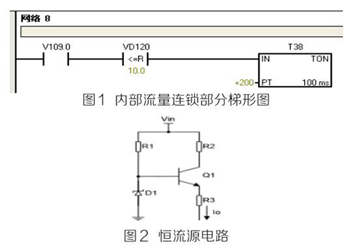 (2)PLC及模塊。PLC及模塊是自動化控制系統(tǒng)主要設(shè)備,且PLC及模塊屬于高集成高精密電子設(shè)備,保持室內(nèi)整潔舒適,可以提高自動化系統(tǒng)運(yùn)行穩(wěn)定性。PLC及模塊硬件運(yùn)行可靠,內(nèi)部控制程序是其控制核心軟件,如PLC硬件出現(xiàn)故障或損壞一般直接更換,但原內(nèi)部控制軟件無法上傳,整個控制系統(tǒng)成失控狀態(tài)。所以其內(nèi)部控制程序在調(diào)試驗收合格后應(yīng)及時備份并做好標(biāo)記,為以后修復(fù)PLC故障提供保障。PLC系統(tǒng)的維護(hù)技術(shù)人員需掌握一定基礎(chǔ)PLC控制邏輯原理,對準(zhǔn)確判斷PLC故障點(diǎn)有很大的幫助。例如選礦廠水泵房S7-200系列PLC自動抽水系統(tǒng)出現(xiàn)如下故障 :觸摸屏能控制變頻器啟動水泵抽水,但在短時間內(nèi)會自動停泵,導(dǎo)致無法正常抽水。通過故障現(xiàn)象可初步判斷PLC及模塊硬件設(shè)備正常,主要由于某個變量有問題導(dǎo)致連鎖停機(jī)。打開備份PLC控制梯形圖程序進(jìn)行相關(guān)分析,原來是高溫液體流量計瞬時流量數(shù)值做了連鎖,其在一定時間內(nèi)瞬時流量不大于10m 3 /h時,自動停泵,電磁流量模擬量輸出電流值僅為4ma且無變化,確定高溫液體流量計有故障??膳R時應(yīng)急維修,模擬量模塊輸入模擬電流值10ma~20ma之間一固定數(shù)值即可恢復(fù)正常運(yùn)行。制作簡單恒流源電路代替高溫液體流量計輸出的模擬電流量,實現(xiàn)解決水泵無法正常運(yùn)行的故障。