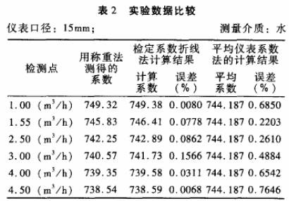 被檢儀表:公稱通徑分別為10mm和15mm的渦輪流量傳感器各一臺(tái);檢定裝置:靜態(tài)稱重法標(biāo)準(zhǔn)水流量檢定裝置,系統(tǒng)精度+0.2%。分別采用常規(guī)的平均儀表系數(shù)法和檢定系數(shù)折線法進(jìn)行標(biāo).定,并與作為標(biāo)準(zhǔn)的靜態(tài)稱重法的檢定結(jié)果進(jìn)行比對(duì),結(jié)果見(jiàn)表1.表2。