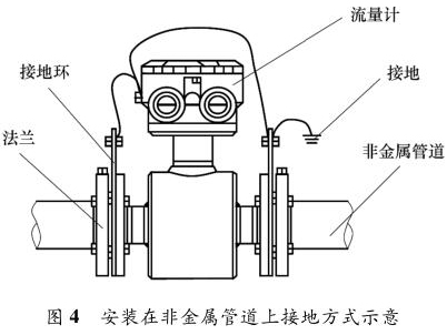 液體流量計(jì)安裝在金屬管道上,安裝時(shí)將金屬管道與液體流量計(jì)相連接,接地線再接入接地網(wǎng),如圖 3 所示。