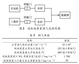 (3) 新建 1 套脫硫管道式渦街流量計(jì),把新建吹風(fēng)氣回收系統(tǒng)煙氣和三廢爐煙氣經(jīng)除塵后引入新脫硫塔,脫硫除塵后凈煙氣經(jīng)過(guò)塔ding煙囪排放。硫酸銨回收利用現(xiàn)有管道式渦街流量計(jì),新建 1 座生產(chǎn)廠房,生產(chǎn)廠房?jī)?nèi)設(shè)置硫酸銨臨時(shí)倉(cāng)庫(kù)。兩路煙氣匯總后進(jìn)入一塔設(shè)計(jì)見(jiàn)圖 2,煙氣參數(shù)見(jiàn)表 3。