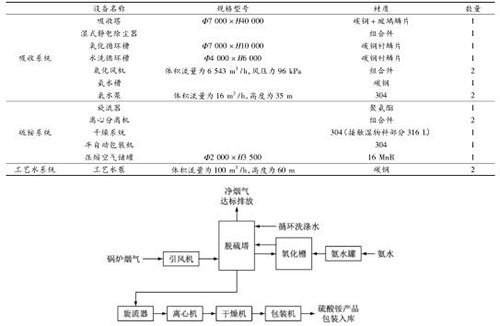工藝系統(tǒng)主要包括煙氣系統(tǒng)、SO 2 吸收系統(tǒng)、吸收劑供給系統(tǒng)、氧化空氣系統(tǒng)、硫酸銨后處理系統(tǒng)、工藝水系統(tǒng)、檢修排空系統(tǒng)、硫酸銨儲(chǔ)存系統(tǒng)(見(jiàn)表 4)。