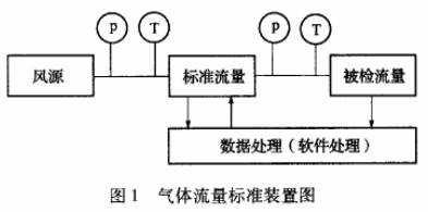 從風(fēng)源排出的具有--定流量的空氣經(jīng)標(biāo)準(zhǔn)表和被檢流量計(jì)時(shí),在標(biāo)準(zhǔn)表中即產(chǎn)生一定頻率的電脈沖信號(hào),經(jīng)與之配合的二次顯示儀表輸人電路放大整形后,送人系數(shù)單元,把脈沖單位轉(zhuǎn)換為流量單位,再送入顯示單元進(jìn)行累計(jì)量的數(shù)字顯示,然后通過介質(zhì)換算系數(shù)及溫度、壓力等全面修正得出流經(jīng)標(biāo)準(zhǔn)表的標(biāo)準(zhǔn)質(zhì)量流量,再通過與被檢表的指示質(zhì)量流量進(jìn)行比較,即可得出被檢表在該流量下的相對(duì)誤差。