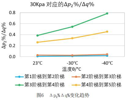 為了更直觀嚴(yán)謹(jǐn)?shù)膶Ρ让總€階段響應(yīng)速度的不同,對原始數(shù)據(jù)進(jìn)行處理,得到如下表格2和表格3。將△p2%/△q%作為響應(yīng)速度的直觀量化表達(dá),若△p2%/△q%的值大,說明單位流量變化照成的出口壓力變化大,即說明電磁流量計響應(yīng)相對較慢,反之亦然。