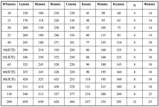 *DN10/DN50(輕型)/DN65/DN80(輕型)法蘭尺寸為 1.6MPa 標準;其余口徑為 6.4MPa 標準;