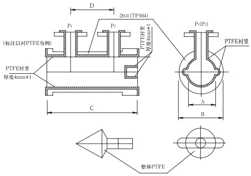 2.尺寸表中同一欄值有兩個(gè)并以/隔開(kāi),表示/下方的數(shù)值是以HG管法蘭尺寸計(jì)算所得。