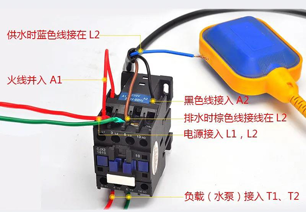 使用藍(lán)色和棕色的電線:浮球在上液位時(shí),接點(diǎn)是不通的狀態(tài)。浮球在下液位時(shí),接點(diǎn)是接通的狀態(tài)。