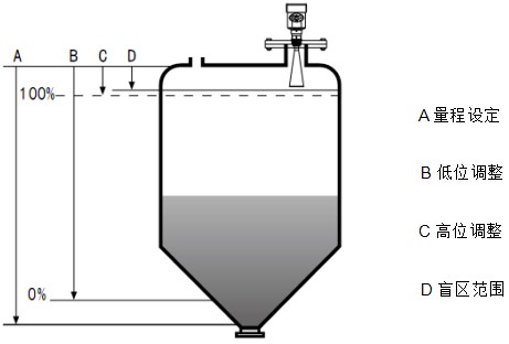 注:使用瀝青液位計(jì)時(shí),務(wù)必保證*高料位不能進(jìn)入測(cè)量盲區(qū)(圖中D所示區(qū)域)。
