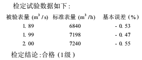 現(xiàn)以其中1臺開封儀表廠生產的口徑1600mm的0.5級電磁流量計為例,分析超聲波流量計的檢定方法及其優(yōu)缺點。
